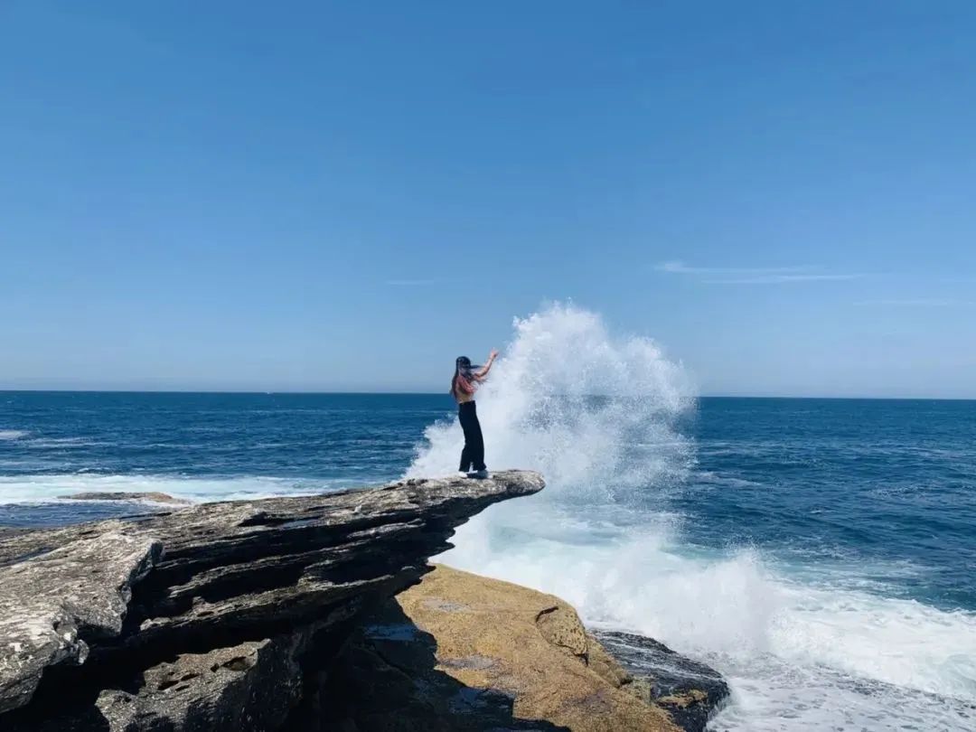 还闲聊了下,发现他竟然是一名国际导游,经常带团去西藏!这很难得,因为某些原因,去西藏旅游的港澳台同胞不多,有诸多限制。 我点开他的主页,看到布达拉宫的照片——半个月前我就在那,莫名感到亲切。 第二天看车很顺利,按照记下来的笔记仔细检查了必查的地方,虽然内心也不是很懂,但能看的都假装专业地看了下。 车子的细节也不错,后备箱空间够大,后座还有装窗帘,空调、音响、蓝牙设备都正常,加上西藏的缘分,爽快地定了下来。 我们约周一的时候去过户。他知道我英文不好,会跟我一起去。我怕他还让别人来看车,主动付了100刀押金,把他的驾照拍了照片。 周末那天,我喊上他、房东阿姨以及whv群里认识一些小伙伴,去了著名的Bondi海滩徒步。 在这次徒步之前,我跟whv群里认识的Ting姑娘一起去过一次海边,当时就被无边无际的蓝色震撼了,往远处看不到边际在哪。 南半球夏天的太阳热烈而灿烂,阳光洒在海面上,随着波浪起伏,鱼鳞般闪闪发光。 不由感叹,澳洲的海也太美了!路过的N个沙滩也都非常干净,水清沙白,细腻柔软,瞬间让我忘记在city的压迫感。 我们沿着小伙伴推荐的徒步路线,路过了一个海边公墓,脑子里想的却是,我要是能葬在这里,每天对着美丽的大海,死也值得。