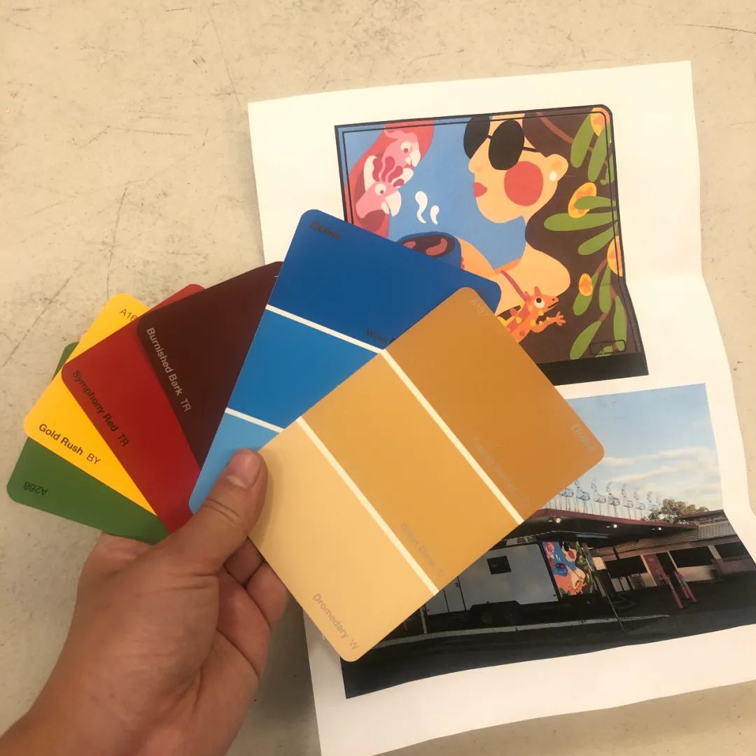 因为Karen希望是黄色为主。草稿阶段,我定了北领地炎热和干旱的基调,用了橘红+Karen喜欢的黄色。