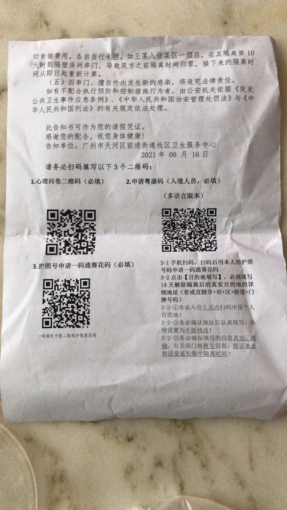 入住时扫下面三个码做心理测试、填资料。如果能确定14天隔离完居家隔离目的地更好,有的社区不接收那就可能要原地再隔离7天,有的省要求14+7+7……