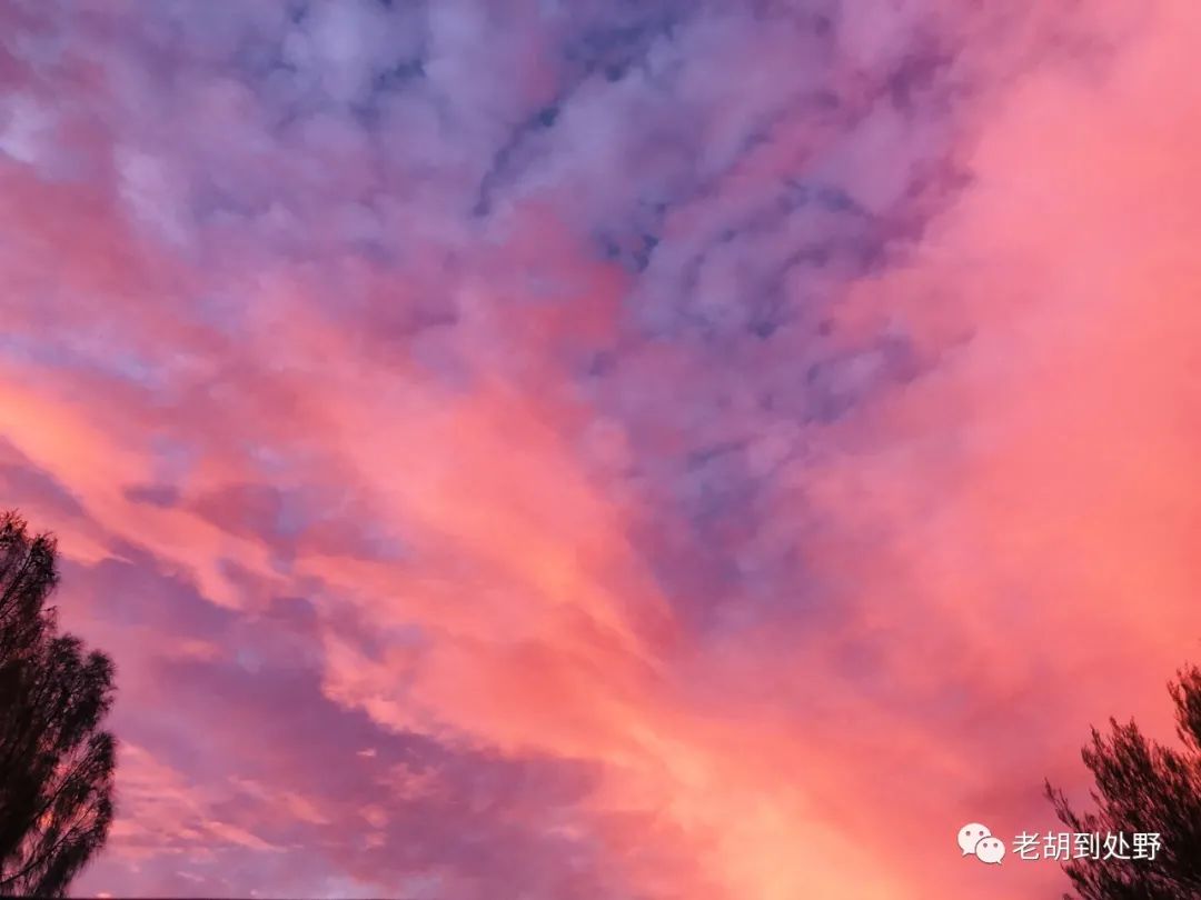 最爱的就是每次散步看到的晚霞。一望无际、毫无遮挡的铁锈红沙漠上的天空,就是上帝的画布,和他笔下无穷无尽肆意挥洒的豪放色彩