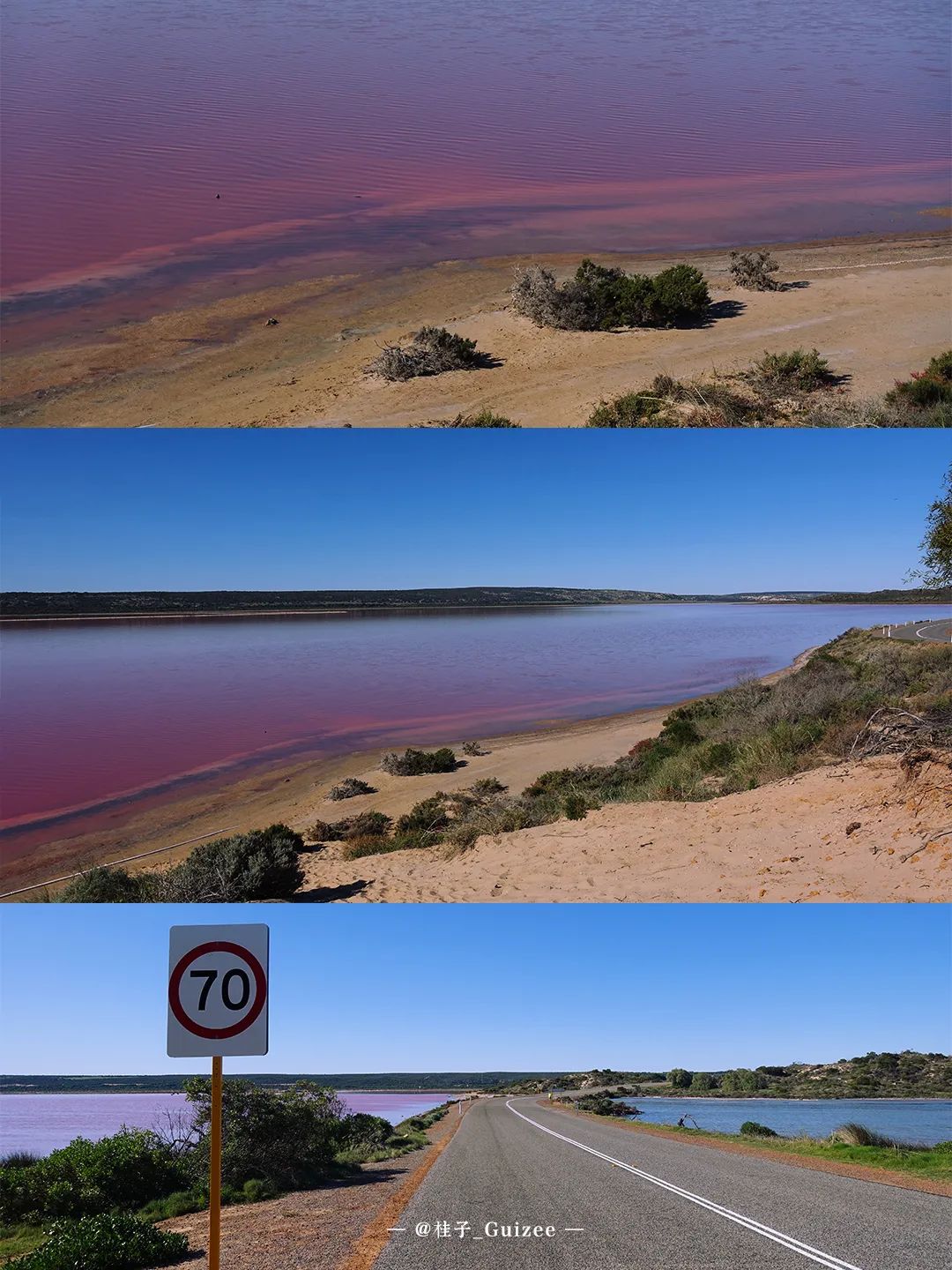 开往当天的目的地Kalbarri,途中会经过Pink Lake Lookout这个粉湖,比南边Esperance的那个粉得更明显,开车经过粉红湖的时候就肉眼可见的粉色,有无人机的话从上面拍应该会更壮观。