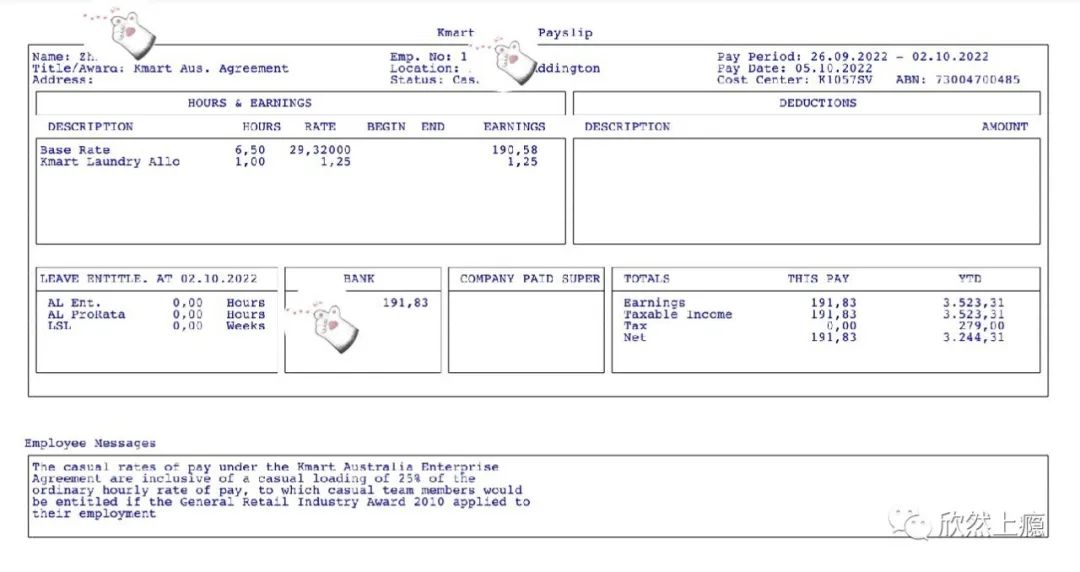 大公司都是按规矩来,成年人工资29.xx刀,带laundry allowance 1小时就有1.25刀。获得fulltime合同需要满足已经工作一年,而且在一年内有连续6个月排班是稳定的。不等待fulltime的原因:我需要稳定收入,不知从什么时候开始,大概是3年前吧,kmart进来现在都不签fulltime了,全都是causal,这样的工时不稳定,我很没用安全感。