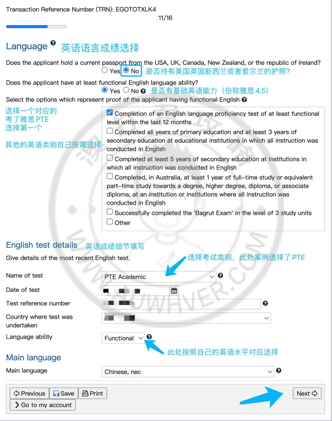 • 签证申请必须通过ImmiAccount在线提交,在填写申请时,申请人必须使用当初预申请时使用的相同信息,否则无法完成申请。