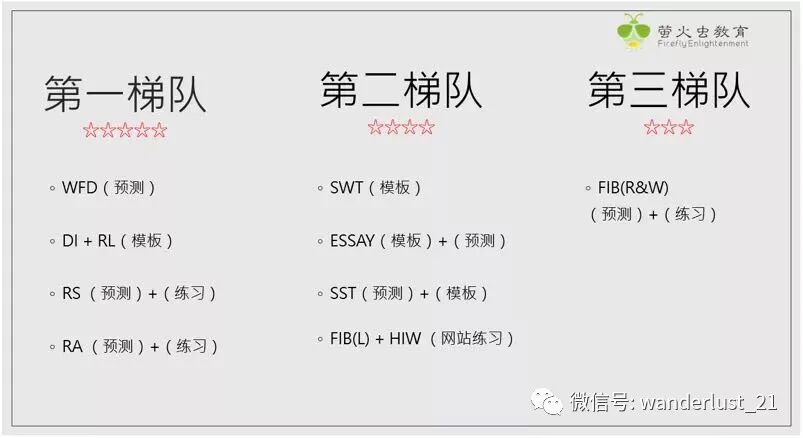 萤火虫网页版,也就看了wfd预测,还有sst,可以关注他家的公众号,加小助手要资料,还有就是他家的三分钟课堂很好!推荐!不熟悉的题型一定要看。