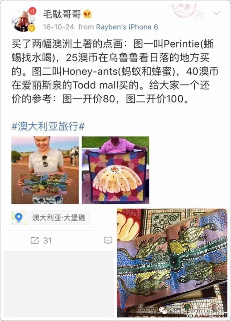 在澳洲中部乌鲁鲁和爱丽斯泉还价买的土著点画: