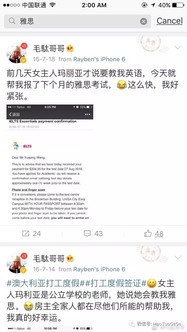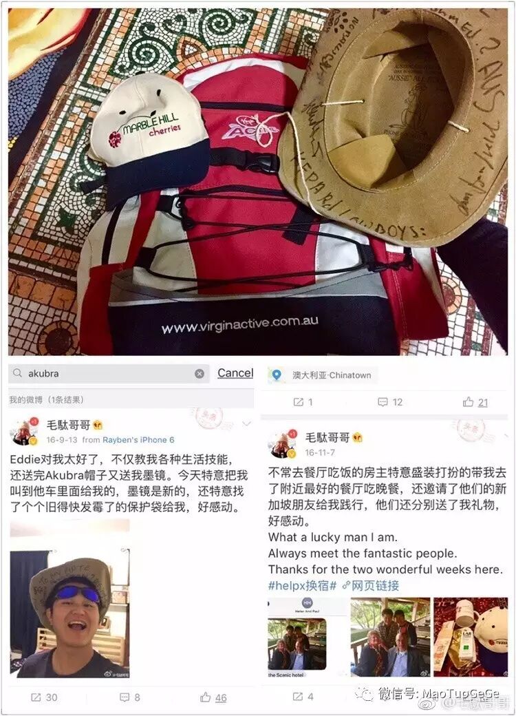 还有阿德莱德的樱桃农场主Helen和Paul送我的,希望我可以在某一天带着它回去看他们的鸭舌帽。