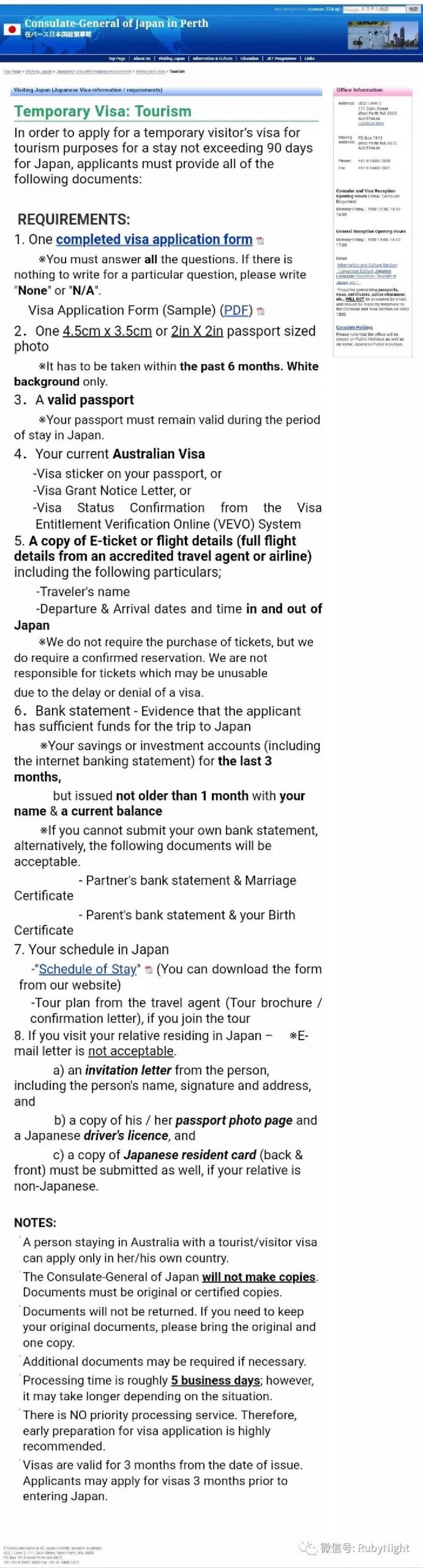 本文适合打算邮寄珀斯日本使馆申请日本签证的WHVer。