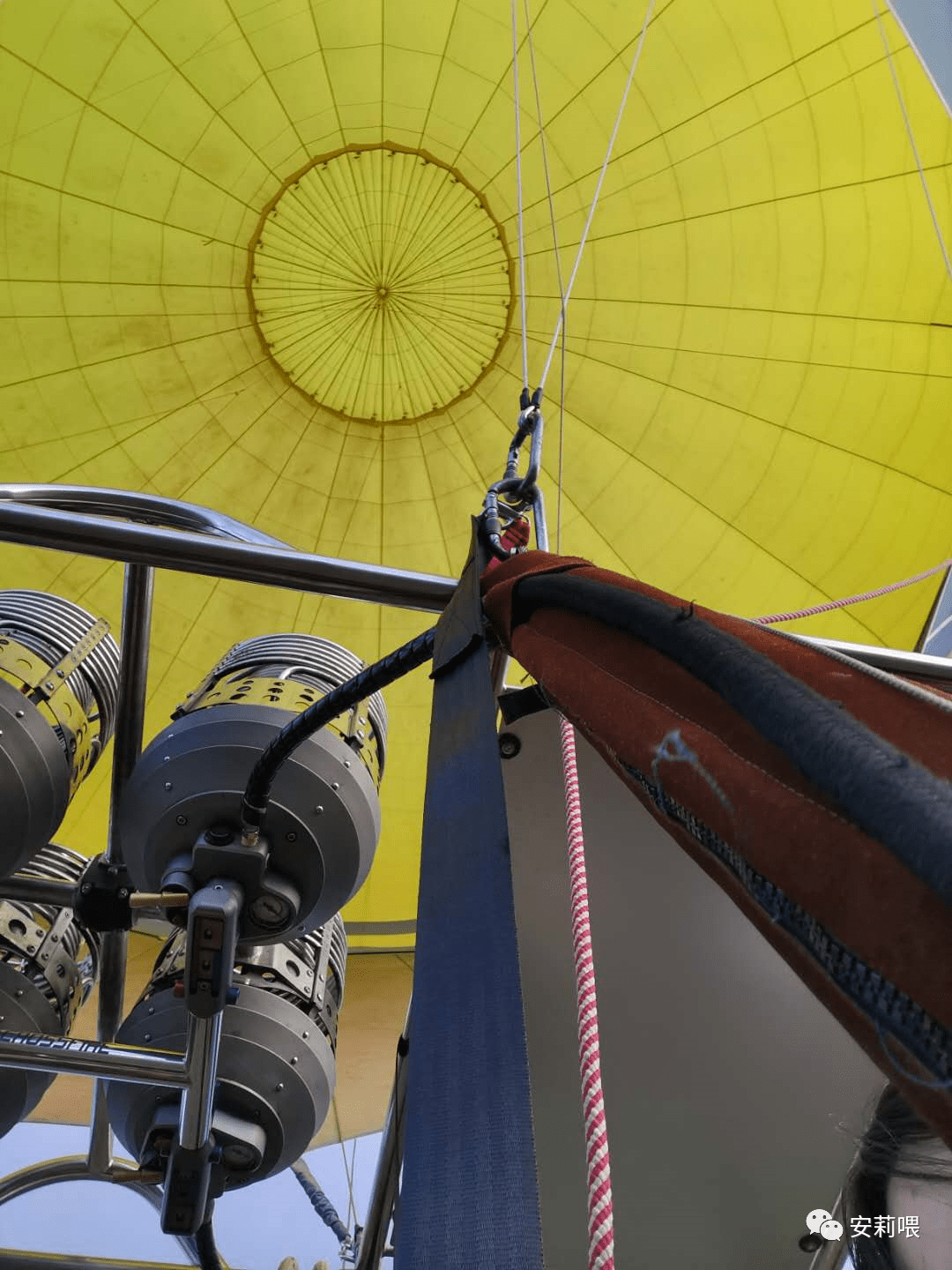 好在这十次里面,我也上了一次热气球。总算体会了一次这个工作的福利。通常只有当客人不够,需要增重的时候才会让员工上热气球。以前都只在外面目送客人起飞,这一次真正自己身处热气球内才发现打火的时候特别吵,声音震耳欲聋,靠近飞行员的位置正好是打火器的下面,感觉头发丝都要被烤焦了。