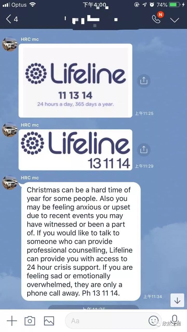 圣诞节期间有个台湾同事因病晕倒在车间,rugby 农场工作群中安抚员工并表示如果有需要心理援助可以打免费热线。