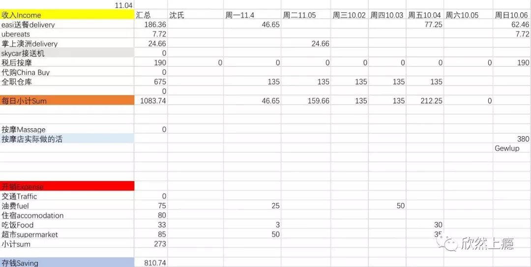 第11周(11.04离开按摩全职工作加入仓库全职工作的第一周,这周应该算是离开工地之后在珀斯的收入最稳定的一周了,虽然也没有很高,但是保持下去到2月份~下学期的学费应该够了。)