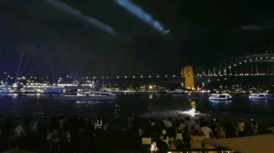 就好像是…外滩边上开演唱会,黄浦江上放烟花,江边步道上站满了人。歌剧院底下的区域是付费观众席,不过海面上有大屏幕转播,整条街的路灯上也都挂了音箱,给我们免费蹭音乐会嘻嘻。