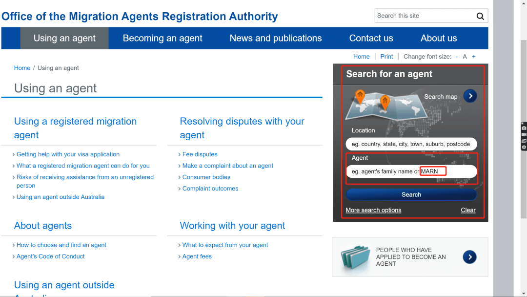 官网!官网!官网! https://www.migration.tas.gov.au/skilled_migrants/skilled_regional 永远以官网为准! 进入到官网后,我们就看到了 How to apply 这个信息 “A complete list of migration agents and lawyers can be found on the MARA website.” 移民代理和律师都在 MARA这个网址可以找到 MARA网站 那么,我们就进来这个网址 https://www.mara.gov.au/using-an-agent/ 在右边,我们可以看到,有一个搜索栏,里面可以搜索持牌移民代理 所以,我们需要有对应移民代理的编号,输入这里面去查找,或者是,去到移民中介的网站上去查找这些信息,这些都是属于公开的信息。 比如我的代理,他的信息在他们公司的网站上就显示出来,这里罗列了所有的代理人的信息,在右下角那个就是我的代理,然后,他的编号也是在上面写着的 核实 拿到编号后,去搜索,就显示下面这个情况,你就可以去查看,是否和自己的移民代理的信息一致,就可以知道,对方是否是骗子啦。 投稿微信:adj-helper3 相关文章 西澳Busselton:驶去天空的海上小火车 蓝象的新西兰打工度假游记 所有澳洲WHV认可的中国体检医院名单 我最快乐的那一年——邂逅新西兰 如何申请澳洲WHV二签,还有开脑洞的高级玩法~ 新西兰打工度假百科 中介 指南 防骗