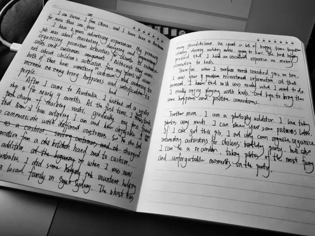 六月上旬,在准备来Philip island之前,我就开始在网上找工作投简历。一天,我在Gumtree上刷到一则关于儿童生日Party策划的招聘信息,工作地点就在海岛上,而且主要是跟孩子有关,想想都觉得很好玩,更重要的是,这跟我之前在国内的工作有点类似,主要偏向于活动策划与执行。于是,我想都不想就立马投了简历,还附上了很诚恳的求职信以及前雇主推荐信。 第二天上午,我就收到了招聘人Louisa的电话,她说她看了我的简历,表示对我很感兴趣,想要约我出来见面聊一聊。接到电话时,我正在悠哉地遛狗,内心却是止不住的小激动,要知道这是我网投了很多简历后,第一次收到来自外国人的面试邀请,而且还是跟我国内工作相关的面试邀请,机会真的太难得了。但由于我当时还在森山老林里的农场,所以只能和Louisa约定周末在海岛相见。 约定的见面时间是周日下午两点多。见面前,我先在家把要说的自我介绍用笔写下来,缕了下重点和逻辑,关键强调自身经验、技能与职位的匹配度,写完后口头复述三两遍,尽量避免语法错误。 *认真准备自我介绍 说实话,我对这次面试很没底。一来,会选择在周末休息时间面试的,应该不是什么正规公司,而且也不知道对方是什么样的人,说不定之前网上剖的招聘信息只是诱饵,最后可能是推销或者骗局;二来,我对自己的英语口语不是很有信心,万一对方问一些很刁钻的问题,我连中文都答不好,更别提用英文了。 但没底归没底,我还是去了——反正面试的地方离家走路就五分钟,万一真的发生什么事,逃出来也容易。 结果就是——双鱼座的我真的容易想太多了,每天没事脑海里就上演各种偶像剧、悬疑剧、宫斗剧,纯粹自己吓自己。 初次见面的Louisa带了一只非常可爱粘人的小狗,她下车后见到我的第一句话就是“What a lovely weather. Nice to meet you, Vivian”,随后她还问我怕不怕小狗,介不介意她把小狗放下车,我说,当然不介意了。说完,顺手牵过她握在手中的狗绳,和她一起进了屋。 *Louisa的Airbnb房子 Louisa边泡茶边跟我说,这是她在岛上的Airbnb房产,她在这个岛上还有其他五所Airbnb房子,都是她一个人在打理。她说,她最近想组织一个专门做儿童生日party策划的团队,目前她已经找了其他几位成员,有的负责做蛋糕,有的负责室内装饰,有的负责物资采购,还有就是我了,她想让我来做线上推广和留资这一块,这刚好是他们现在团队所欠缺的。 听到面目和善的Louisa这么说,我一下子就放宽心,把先前准备好的自我介绍说了下,重点强调自己在国内的工作经历还有在澳时长,以此表示自己具备相关经验以及对这个国家的熟悉、了解程度,另外还特别提到自己的摄影技能,我对Louisa说,我不但可以负责前期的推广,还可以负责中期Party视频或者照片的拍摄,所拍的素材既可以给家庭留念,还可以用于活动后期的二次宣传。 Louisa听完连连点头,在看了我展示给她的一些摄影作品后,她表示很满意,她说下个月初,她们会在这个Airbnb小屋举办一场女性茶话会活动,到时候我可以来现场拍摄,她会付我工资,同时我还可以借此机会认识些新朋友,甚至可以展示自己的技能,将活动照片定制成相册,进行二次增值售卖。 原本只有十几分钟的面试时间,我和Louisa聊了半个多小时。虽然我们所聊的还未进入执行阶段,但这番谈话却让我觉得又新鲜又奇妙——没想到有那么一天,我会在远离曾经一起共事一起闹的“十二生肖”的南半球,和一个刚认识外国人,用英语聊着我们曾经最熟悉无比的话题,活动的宣传、留资、组织与策划等——这种感觉真的很神奇,虽然眼前我对面坐的是刚认识不到一小时的Louisa,但某一刻,我总觉得,曾经那群一起笑一起闹一起通宵熬夜的小伙伴,他们就在我身后看着我,看着我用不同的语言聊着我们曾经无数次brainstorming的话题,那一刻我在想:此时此刻,他们又是在和谁进行着新一轮的brainstorming呢? 面试快结束时,Louisa知道我刚搬来这个小岛,没什么朋友,而且还在找新的工作。她说,我在岛上有六所Airbnb房子,这所离你家最近,平时客人走了之后需要打扫卫生,如果你有兴趣的话,可以把它当成兼职来做,我会付你工钱。 听到她这么说,我实在太高兴了。虽然每周可能只打扫一次,但所赚的钱却足够一周的食物开销,加之我现在免费住Bruce家,没有了房租和伙食的压力,我可以慢慢地找其他更好的工作,或者把更多的时间投入到自己所热爱的事情当中。这真的是上天对我的再次眷顾呀! 最后,要离开时,Louisa又说,你刚搬来这里,没什么朋友,我把我的邻居介绍给你,你们互相认识一下。她是一位非常好的人,以后你要是遇到什么困难,或许可以找她帮忙。 听到她这么说,我除了高兴,更多的感激。虽然我们初次见面,虽然我们并不深知,但她的温厚、淳良,就犹如冬日里的一缕暖阳,在这个寒冷的南半球里,带给我很多的温暖与感动。 在和Louisa见面后不久,墨尔本所在的维州出现很大的疫情反弹,原本要放宽的社交限制再次被收紧,家庭聚会也再次被禁止,因此,我们的儿童生日Party和女性茶话会活动都只能暂时搁置下来。 不过,Louisa还是按她先前所答应我的,把Airbnb的housekeeping兼职工作留给了我。第一次去的时候,她教我怎么换床单、换枕套、铺床等,怕我不够高,她自己一个人把屋子里里外外所有窗户都清洗了遍,自己在大冬天里弄得满身大汗,却把最简单的擦台面、扫地、拖地的卫生工作